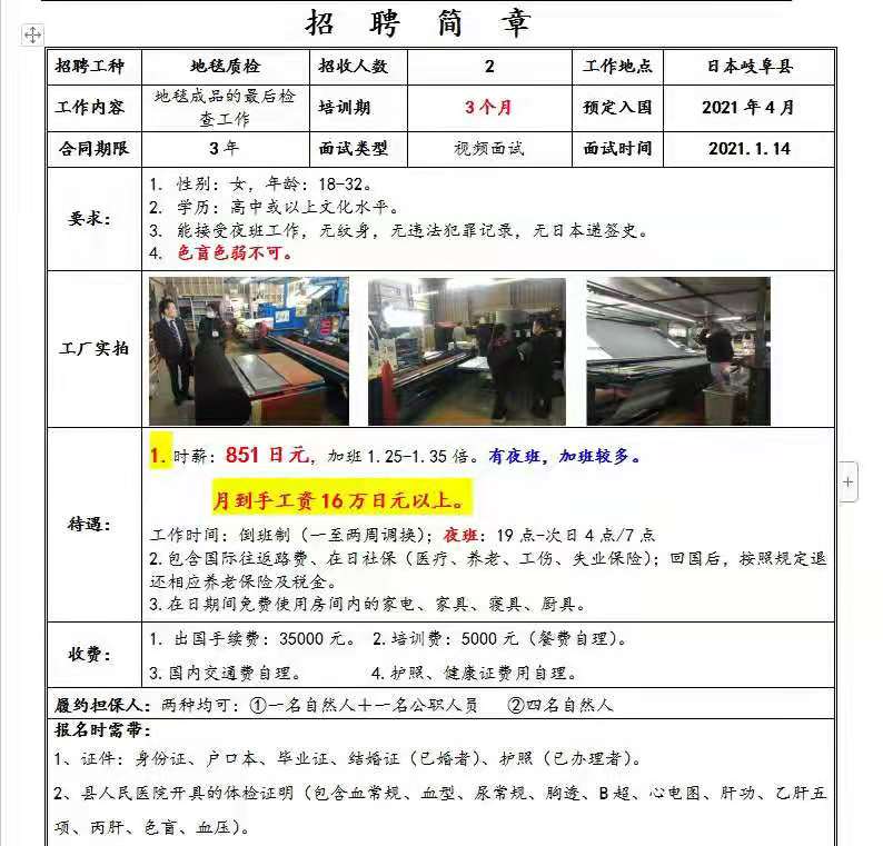 岐阜县(日本)地毯质检女工 月入11000