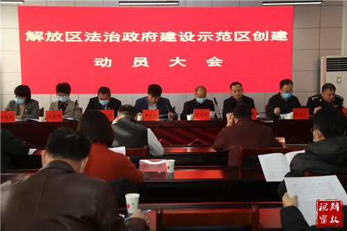 1月12日上午,解放区召开法治政府建设示范区创建动员大会。旨在贯彻落实中央、省、市关于法治政府建设示范区创建工作有关精神,安排解放区法治政府建设示范区创建工作。市委全面依法治市委员会办公室成员、市司法局 ...