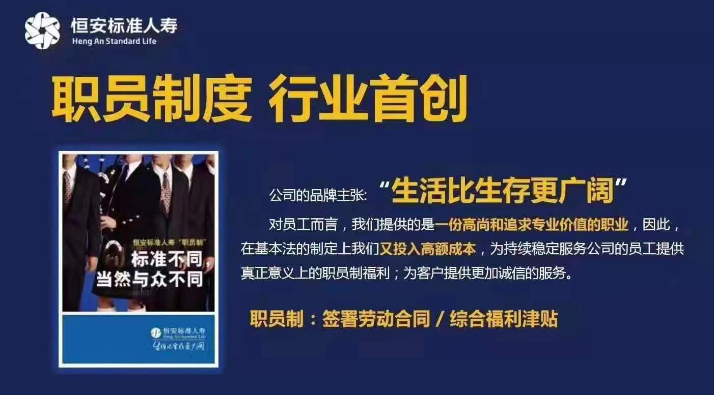 | 如果你认可保险,希望从事这样一份事业,作为中国一家从事寿险业务的合资保险公司之一,恒安标准人寿,欢迎有识之士的加盟,我们共同为保险事业的发展、为客户能得到全面解决方案,贡献自己的一份力量! |