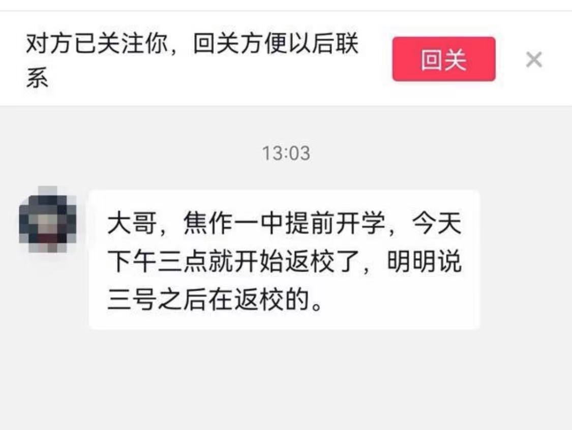 9月2日上午开始,不少焦作一中的学生、学生家长向大河报反映,按照焦作一中的通知要求,该校高二年级学生将于今天下午到校报到,而根据焦作市教育局此前的权威发布,焦作市高二年级开学时间不早于9月3日。 不少学 ...