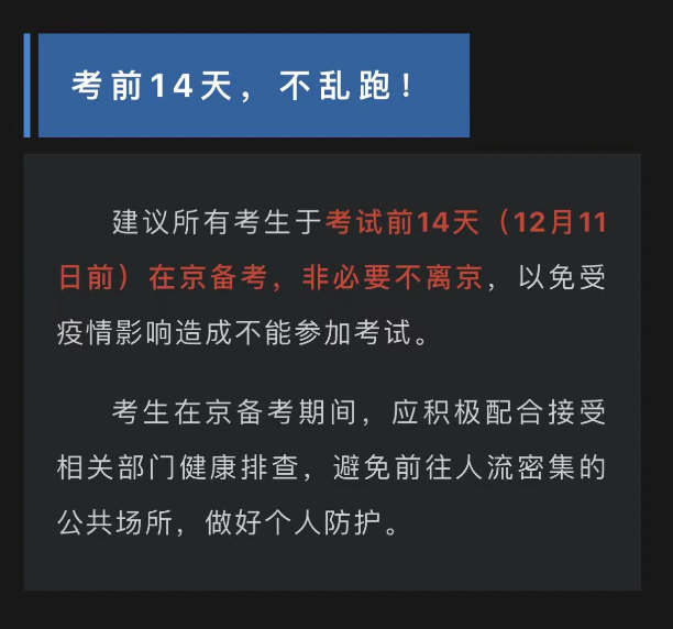 本帖最后由 柠檬的向日葵 于 2021-12-6 09:58 编辑 北京: 据“首都教育”消息,北京市2022年全国硕士研究生招生考试将于2021年12月25日至27日举行,为了保障广大考生和考试工作人员的生命安全和身体健康,北京教 ...