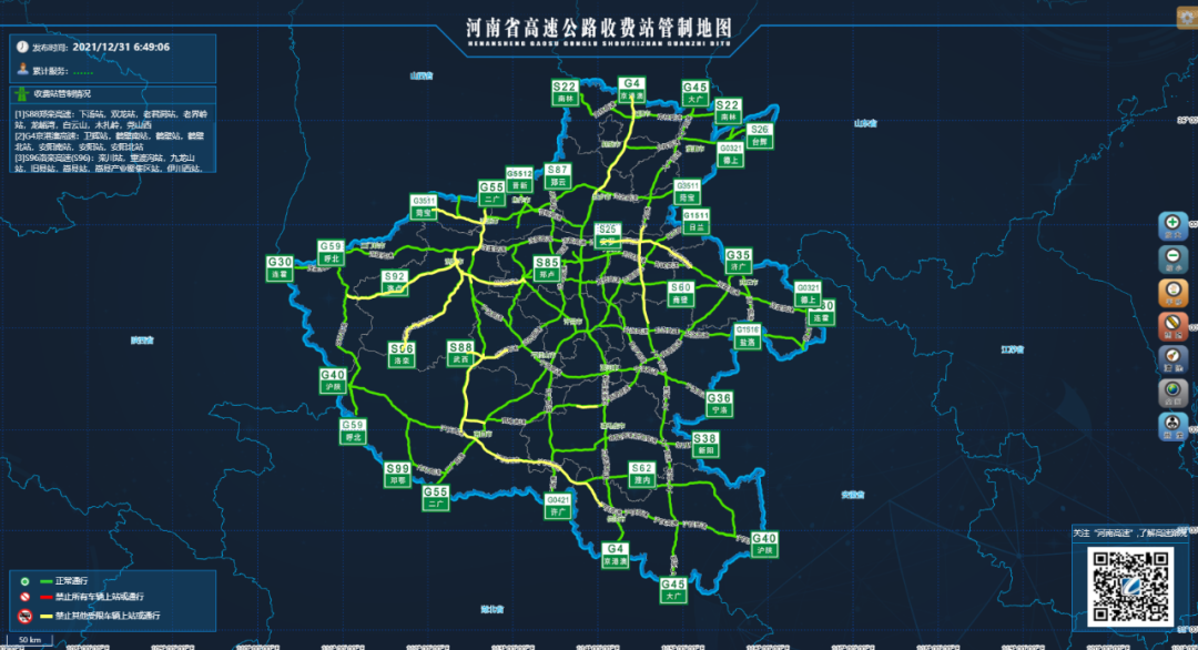 发布时间:2021年12月31日07:30省高速公路路警联合指挥中省内高速公路通行顺畅。施工路段:1.京港澳高速(G4)确山服务区封闭施工。(施工时间:2020年6月1日-2022年3月31日) 2.京港澳高速(G4)新乡服务区封闭施工。 ...