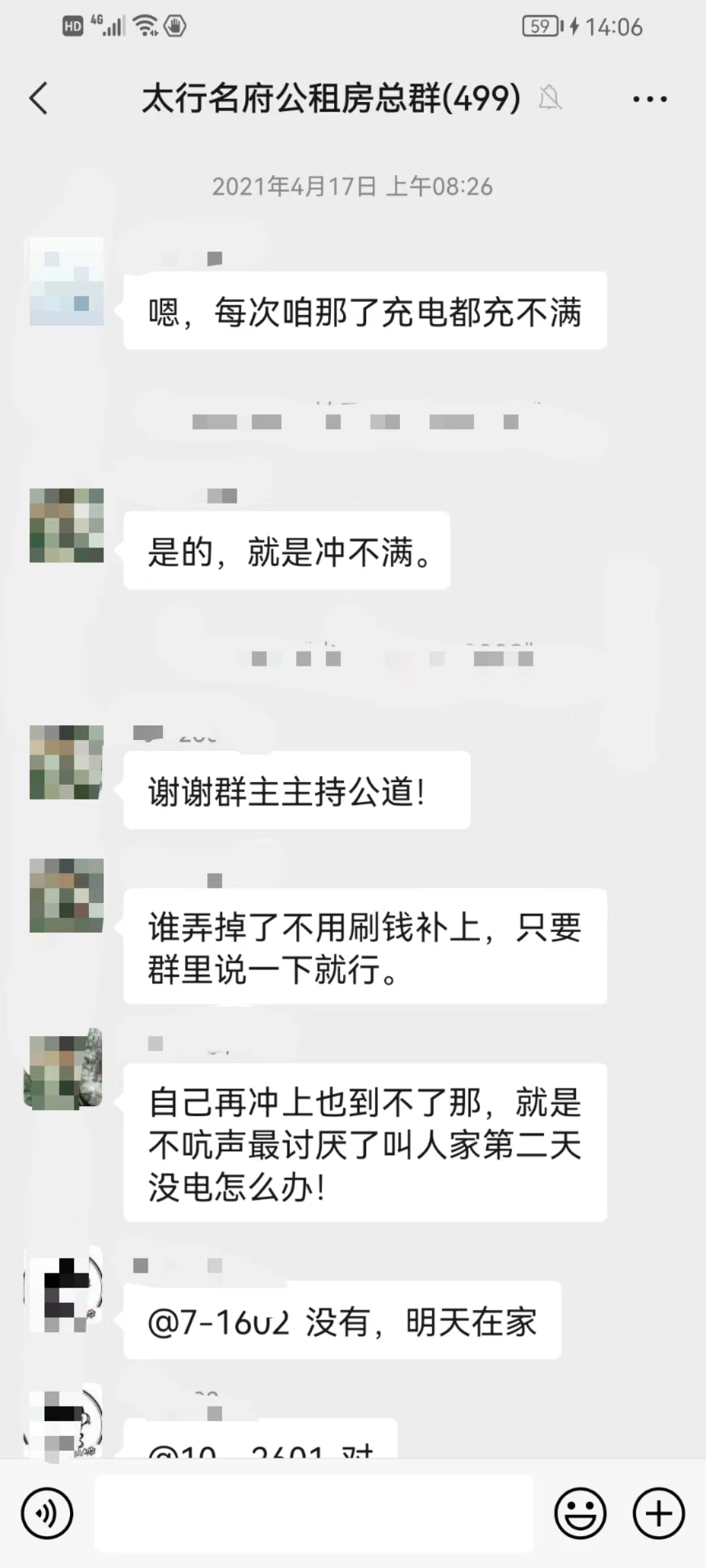 我是太行名府小区的租住户,小区设立的电动车充电桩设置的充满自停,但是每次都是充不满,打电话投诉,过好了两天,之后就又不行了。不仅影响我们正常使用,尤其是跑远的地方,到半路都没电了,还得自己推。还影响电 ...