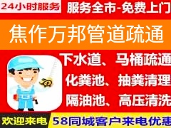 | 焦作各区疏通下水道、马桶疏通维修、管道疏通、主管道疏通、高压管道清洗疏通、阴井疏通清理、下水道改换、洁具安装维修。公司诚邀与物业、社区、酒店、宾馆、大厦、学校、单位长期承包合作,并派专人护理维护等工作 |