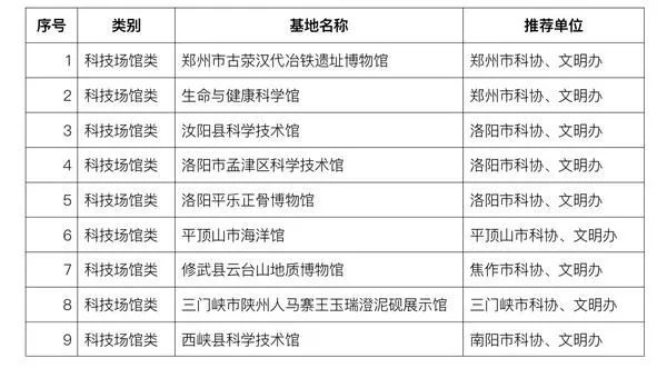 4月19日,省科协、省文明办公布2022年度河南省科普教育基地认定名单,86个单位上榜。同时,28个全国科普教育基地直接认定为省级基地(或省级基地有效期延长至2026年)。2022年度河南省科普教育基地申报认定工作启动 ...