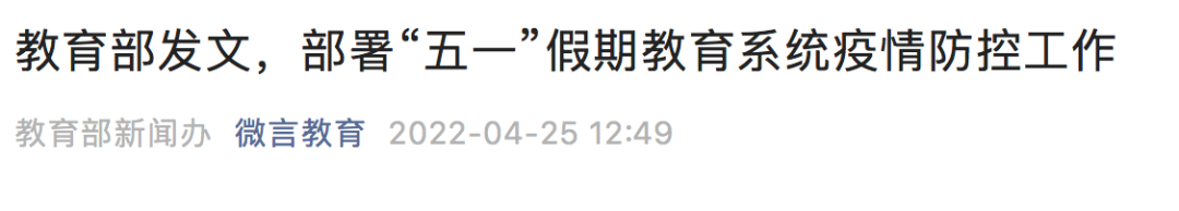 事关“五一”假期,教育部发文 4月25日,记者从教育部了解到,教育部近日印发通知部署“五一”假期教育系统疫情防控工作,要求夯实防控责任,科学部署假期安排,切实加强健康监测,严格落实防控措施,全面提升保障水 ...