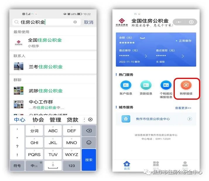 因工作调动,职工在转入地中心设立住房公积金账户并正常缴存半年后,可申请将在原工作地缴存的住房公积金转移到转入地中心,职工可在微信小程序“全国住房公积金”申请转移接续。 也可以向转入地住房公积金中 ...