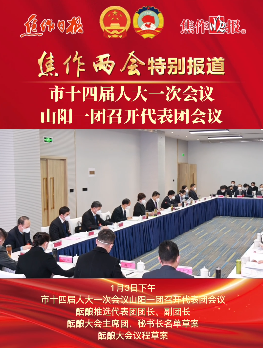 1月3日下午,市十四届人大一次会议山阳一团召开代表团会议,酝酿推选代表团团长、副团长,酝酿大会主席团、秘书长名单草案,酝酿大会议程草案,酝酿大会计划、预算审查委员会组成人员名单草案,酝酿大会议案审查 ...
