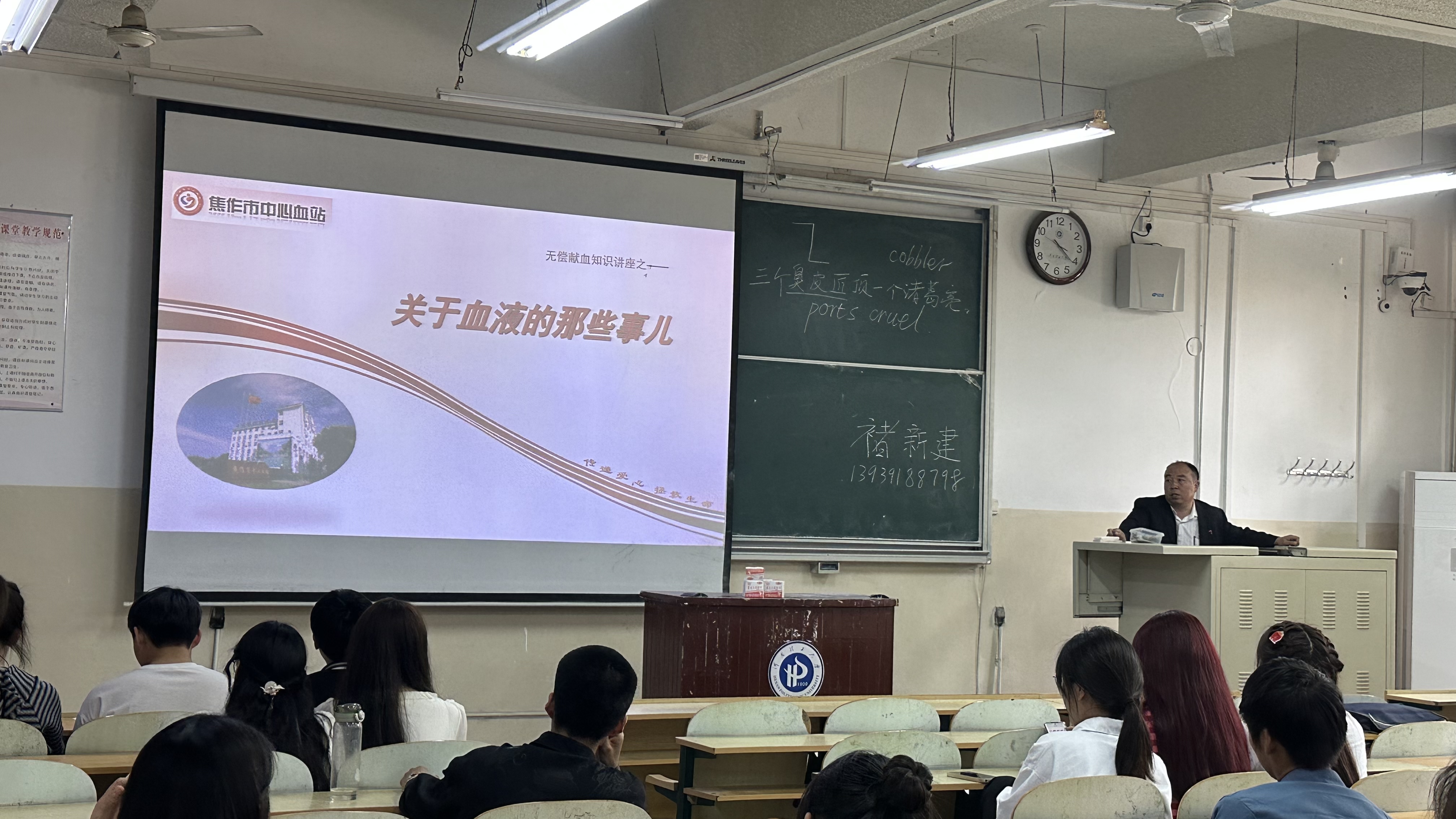 为持续提高大学生积极参与无偿献血意识,4月17日焦作市中心血站工作人员到河南理工大学进行无偿献血知识宣讲,体采科科长褚新建从血液知识、无偿献血法律法规、献血前后注意事项、用血减免政策等方面,为全体师生进 ...