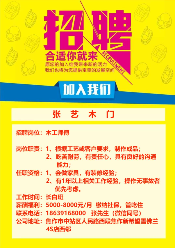 张艺木门高薪聘请木工师傅!长白班管吃住 ...