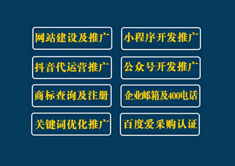 专业网站制作、百度本地惠生活会员开通、百度推广优化、小程序开发、抖音蓝V认证推广、400电话及商标办理