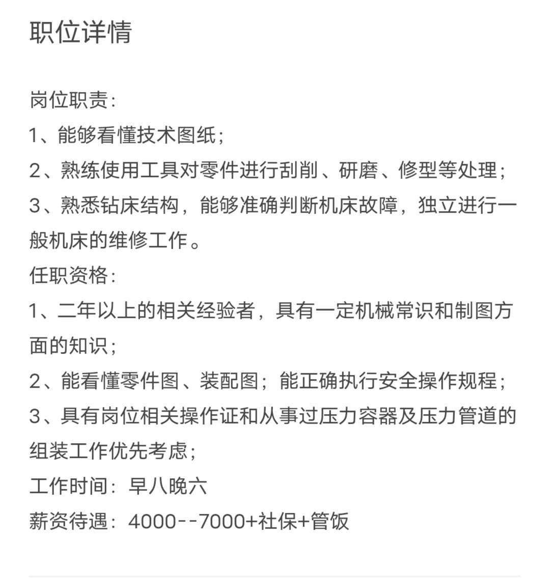 招聘 钳工