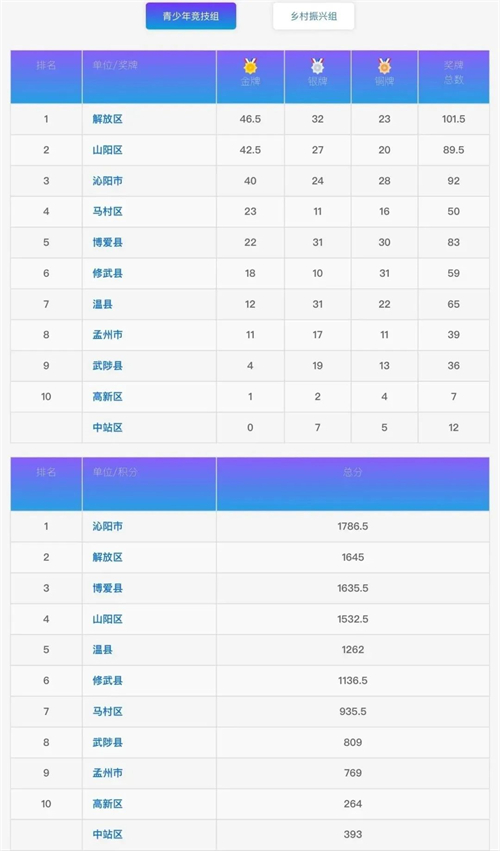 近日,焦作市第十四届运动会暨2024年焦作市全民健身大赛圆满收官。经过两个多月的激烈比赛,解放区代表团以追求更高、更快、更强的体育精神、敢打敢拼的作风和良好的赛风赛纪,取得了青少年竞技组46.5金、32银、23铜 ...